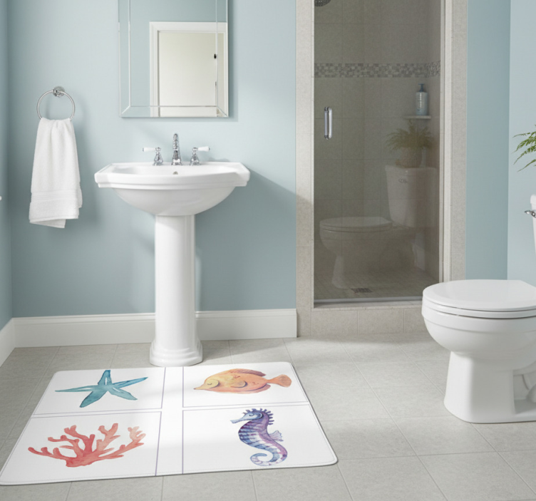 The Vinyl rug bathroom marine animals is an inspiring choice for bathroom decoration as it effortlessly combines style and functionality. Imagine stepping onto a rug that captures the essence of the ocean, making your daily routine feel like a refreshing seaside escape. Its unique design enhances the overall ambiance of your bathroom, making it a cheerful and inviting space for you and your guests!