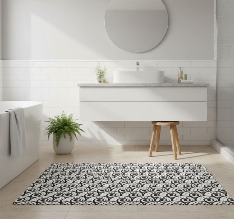 Tsunami effect vinyl rug bathroom
