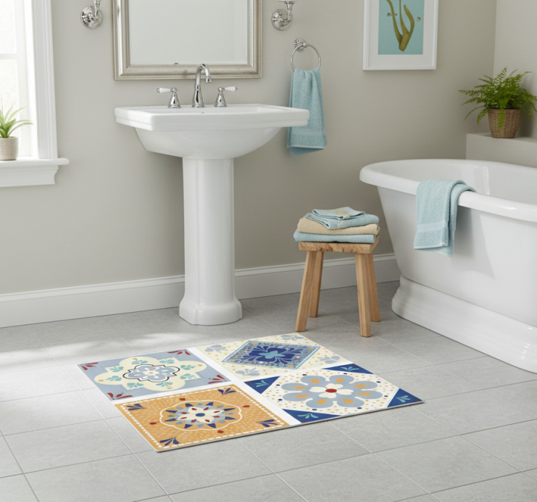 The Vinyl rug bathroom vibrant color palette vinyl rug bathroom is an exceptional choice for anyone looking to elevate their interior design. With its eye-catching colors and stylish pattern, this rug can instantly brighten up any bathroom space. It serves as a focal point that ties the room together while providing comfort and protection for your floors. Experience the perfect blend of functionality and aesthetics!