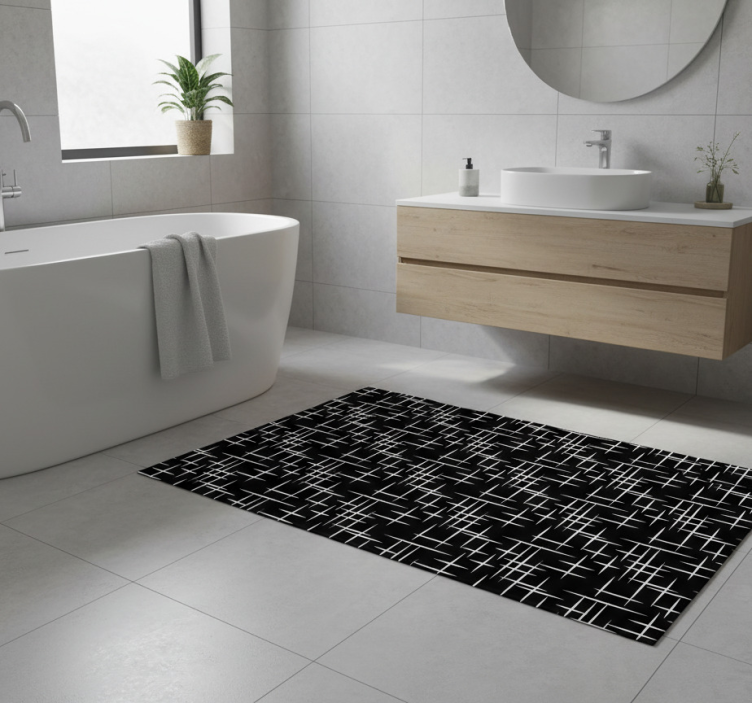 The Vinyl rug bathroom with contemporary lines vinyl rug bathroom is an ideal decorative choice for those looking to elevate their bathroom's style. Its unique patterns and colors can create a focal point that draws the eye, instantly refreshing the ambiance. Embrace the opportunity to express your personal style while enjoying a functional piece that complements your décor!