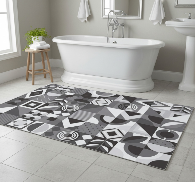 Vinyl rug bathroom gray geometric tiles
