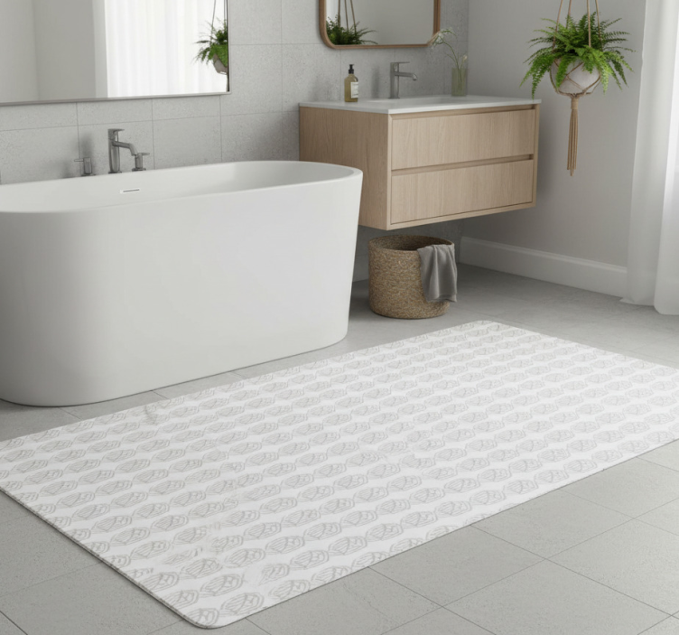 The Vinyl rug bathroom with grey leaf pattern vinyl rug bathroom elevates your space with its beautiful design. It creates a calming environment, perfect for relaxation after a long day. Imagine stepping onto this stunning rug, which seamlessly blends style and functionality, enhancing your bathroom decor effortlessly!