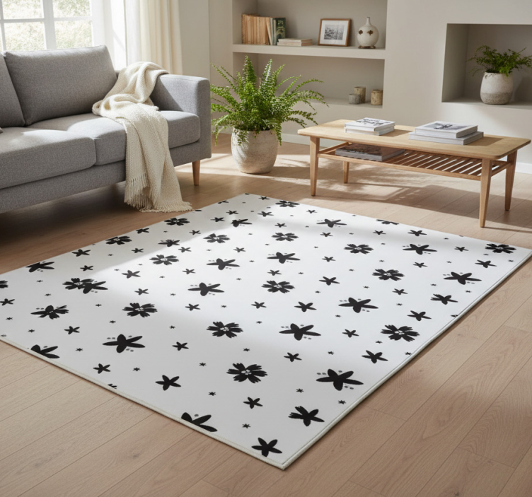 Keeping your Vinyl rug flowers black and white floral design looking fresh is a breeze! With a simple wipe or vacuum, you can maintain the beauty of your vinyl rug flowers. Enjoy the ease of cleaning without the hassle, allowing you to focus on what truly matters—your home!