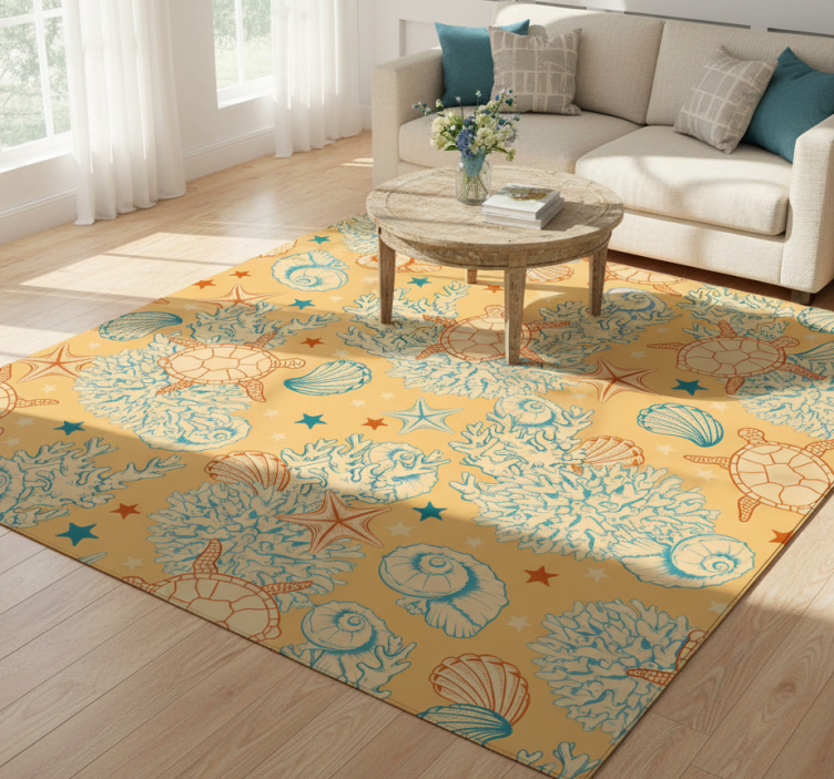 Vinyl rug flowers coral and marine life design