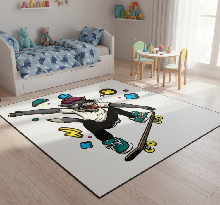 The Wolve on skate animal vinyl rug is not just a floor covering; it's a statement piece that brings personality and charm to your decor! Imagine the delight of guests as they admire this eye-catching rug that showcases a playful yet sophisticated design. It's an ideal choice for living rooms, play areas, or any space that needs a touch of creativity!