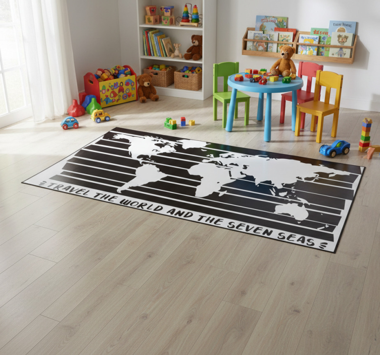 The World map vinyl rug explore the globe world map vinyl rug is an inspiring centerpiece that sparks conversations and ignites the imagination. Its vivid colors and detailed design make it a perfect addition to any living room, office, or playroom. Let it serve as a reminder of your adventurous spirit, as it effortlessly ties together your decor and encourages a sense of global connection!