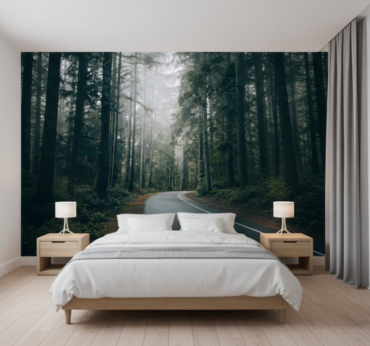 Elevate your interior decor with the Forest wall mural foggy pine road forest wall mural. This enchanting piece not only enhances the aesthetic appeal of your space but also fosters a sense of peace and relaxation. Imagine waking up to a serene forest view every day! This mural serves as a stunning focal point, inspiring a connection to nature that rejuvenates the spirit.