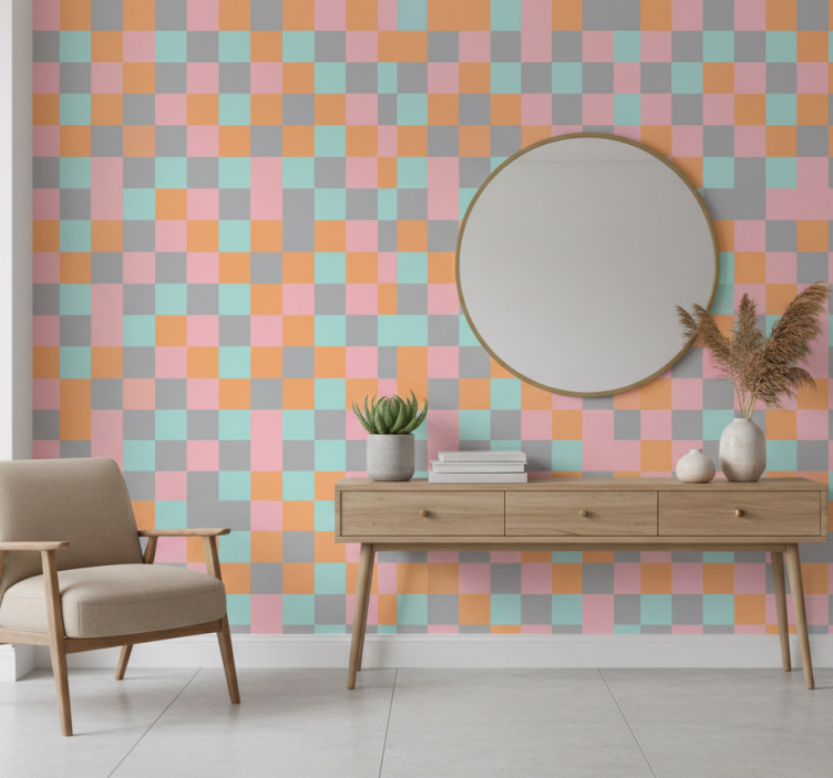 Reference: P11772Transform your hallway with our Hallway wallpaper squared abstract design, featuring a stunning combination of geometric shapes and soft matt colors that create a modern and inviting atmosphere. This non-woven wallpaper not only boasts a sophisticated squared abstract design but also offers durability and easy maintenance, making it a perfect choice for any home. Its unique characteristics ensure that it stands out while seamlessly blending into your existing decor.