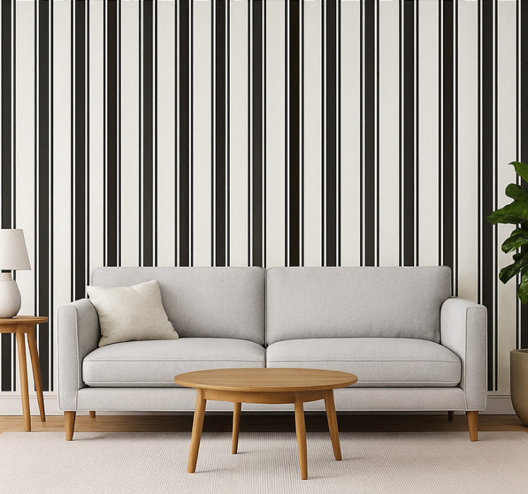 Living room wallpaper vintage black white stripes